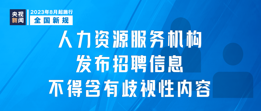 《人力資源服務(wù)機(jī)構(gòu)管理規(guī)定》8月1日起施行。明確人力資源服務(wù)機(jī)構(gòu)接受用人單位委托招聘人員的,發(fā)布招聘信息應(yīng)當(dāng)真實(shí)、合法,不得含有民族、種族、性別、宗教信仰等方面的歧視性內(nèi)容。