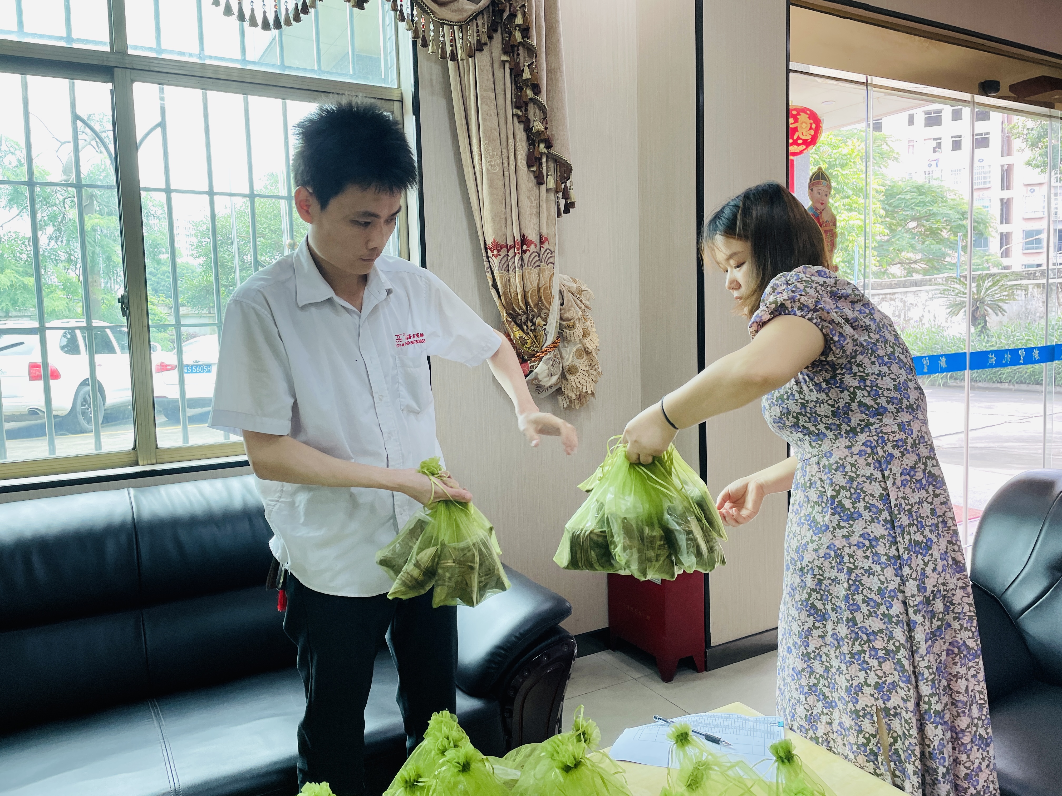在端午節這一天新望大道為員工準備了美味的粽子。我們希望通過這份小小的關愛,表達對員工的感謝和祝福。愿每一位員工在端午節假期中,健康安康,快樂幸福!