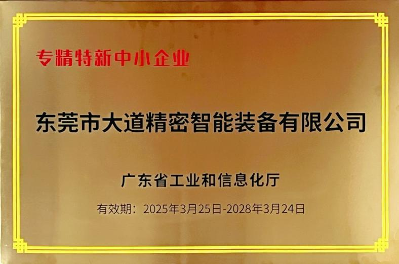 2024年12月19日,大道精密已被評定為廣東省“專精特新”中小企業(yè)。該資質(zhì)認(rèn)定聚焦于具備“專業(yè)化、精細(xì)化、特色化、新穎化”特征的中小企業(yè),是對企業(yè)在細(xì)分市場技術(shù)優(yōu)勢、創(chuàng)新能力及發(fā)展?jié)摿Φ臋?quán)威背書。大道精密長期深耕精密智能裝備研發(fā),在自動化控制、安全防護(hù)系統(tǒng)集成等領(lǐng)域形成多項核心技術(shù),產(chǎn)品廣泛應(yīng)用于新能源、汽車制造、精密電子等行業(yè),以高可靠性和智能化水平贏得市場口碑。
